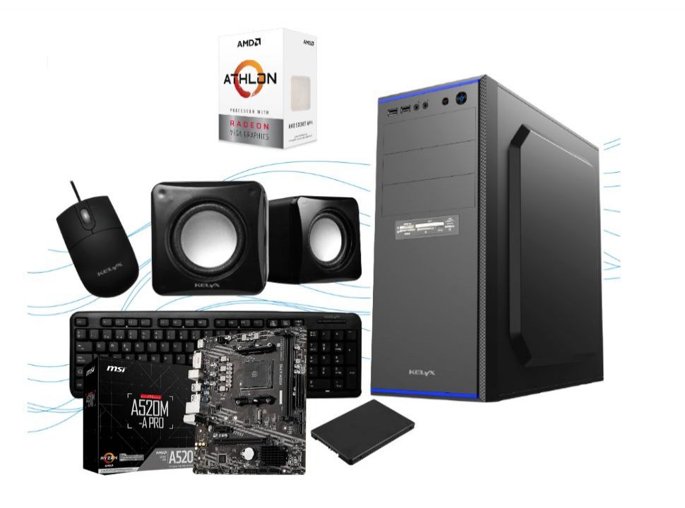PC KELYX AMD ATHLON 3000G MEMORIA 8GB DISCO 240SSD MOTHERBOARD A520M-A PRO (KIT TECL/MOUS/PARL)